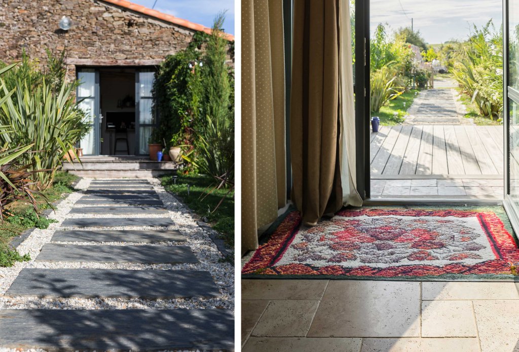 En 2025, la transition fluide entre intérieur et extérieur se renforce avec des aménagements qui invitent la nature dans la maison. Les allées en pierre ou en bois prolongent l’espace extérieur jusque dans le salon ou la cuisine. Les grandes baies vitrées, les terrasses surélevées et les revêtements continus participent à cette harmonie, offrant une connexion directe avec l’environnement.