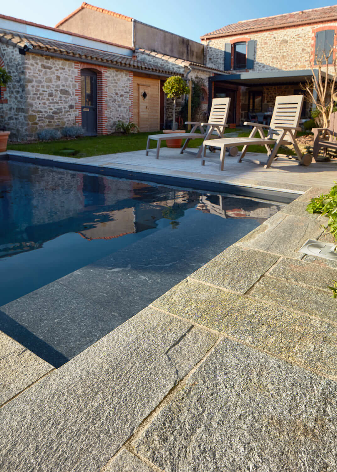 La quartzite de Luzerne est une pierre gris foncé avec des reflets brillants et un fini naturel au charme rustique. Robuste et résistante, elle est idéale pour le paysagisme et les aménagements extérieurs élégants