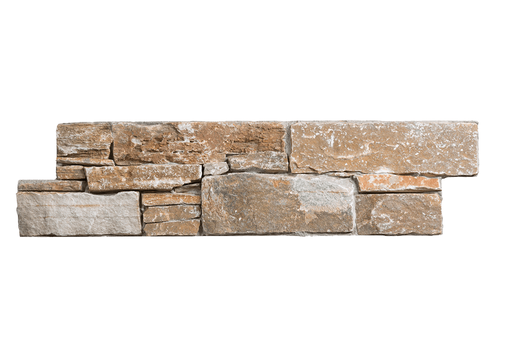 STONEPANEL ORIENT GOLDNotre système de panneaux est composé des lames de quartzite doré avec des nuances marrons et gris clair.